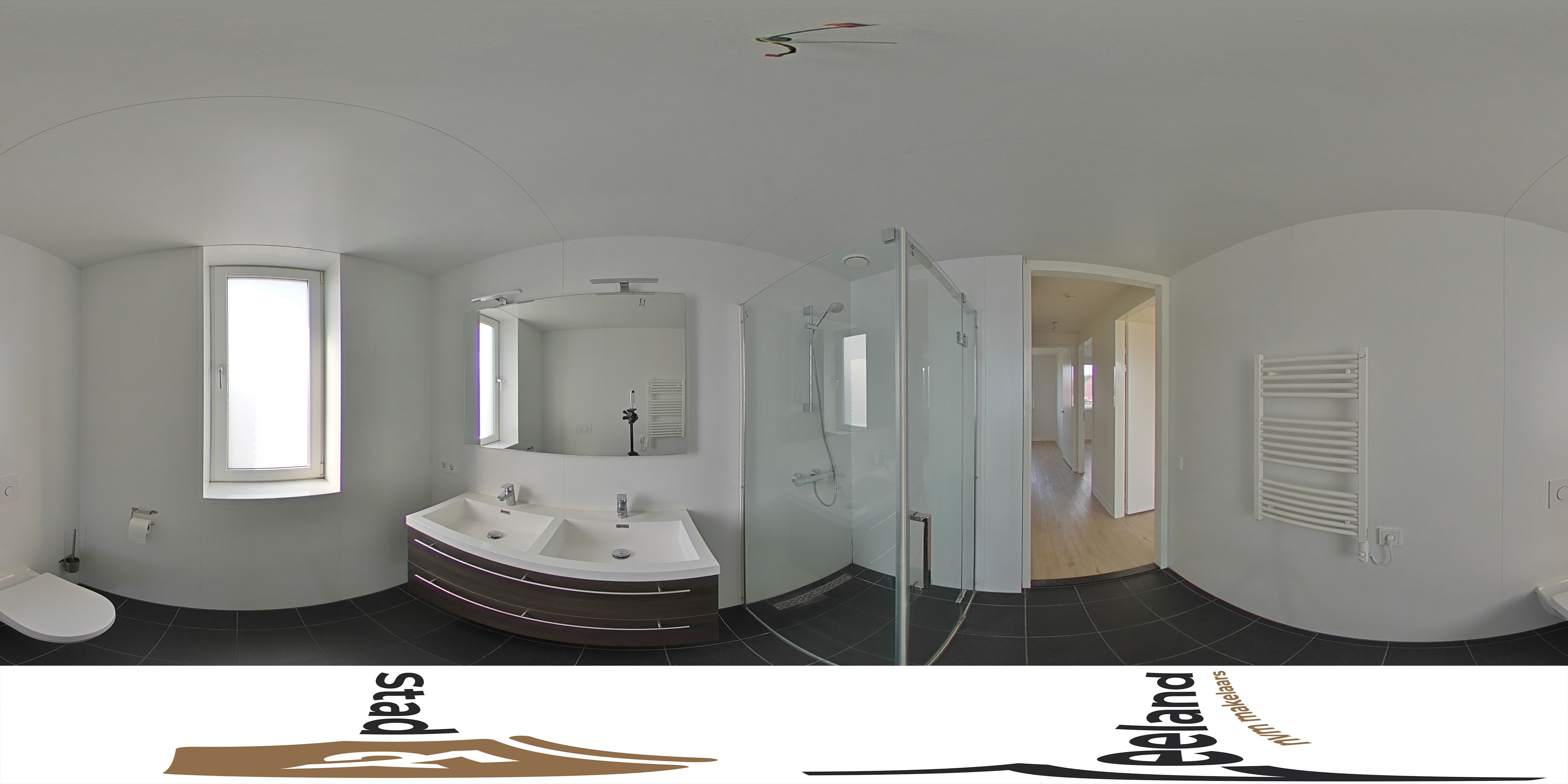 De badkamer is een oase van luxe en comfort. Voorzien van Villeroy & Boch sanitair, een dubbele wastafel met meubel, tweede toilet en een ruime inloopdouche. De combinatie van vloerverwarming en een extra radiator maakt deze ruimte altijd aangenaam warm. Het raam zorgt voor natuurlijke ventilatie en veel licht.